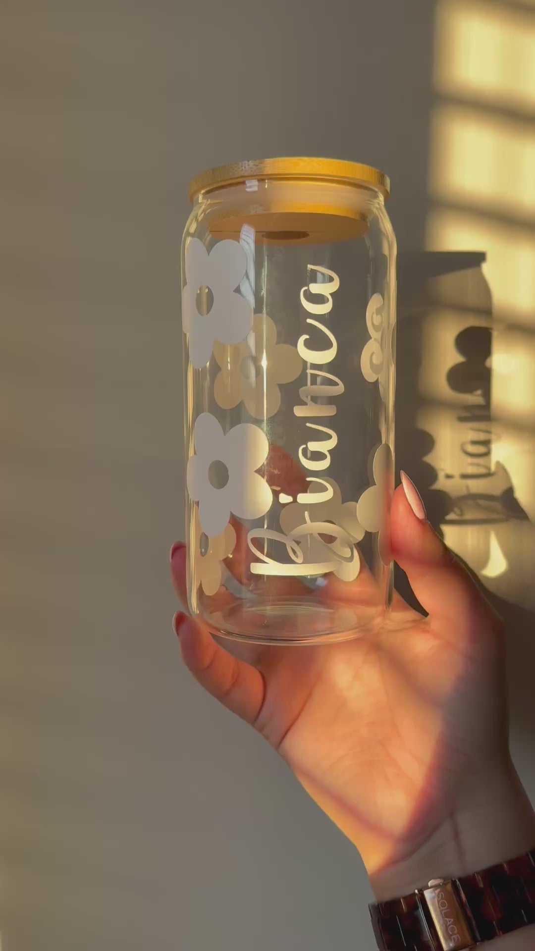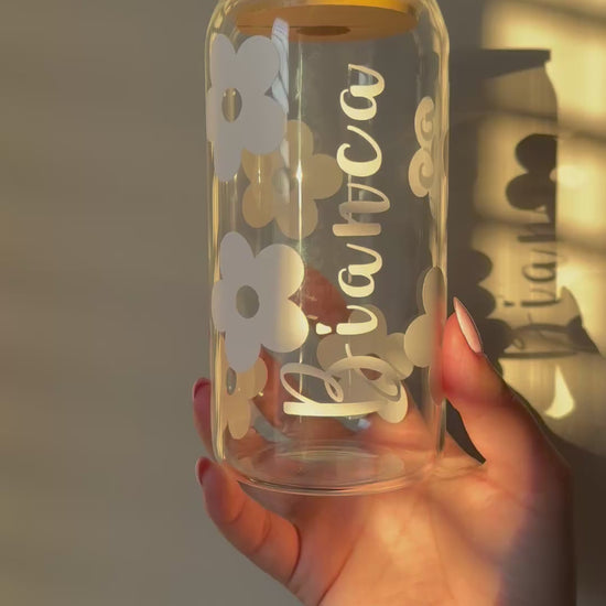 Delicate white flowers meet your custom name in this dreamy, elegant glass cup. Perfect for iced coffee, tea, smoothies, or refreshers, it combines charm and function in every sip. 💖 A lovely gift for birthdays, bridesmaids, or just because.